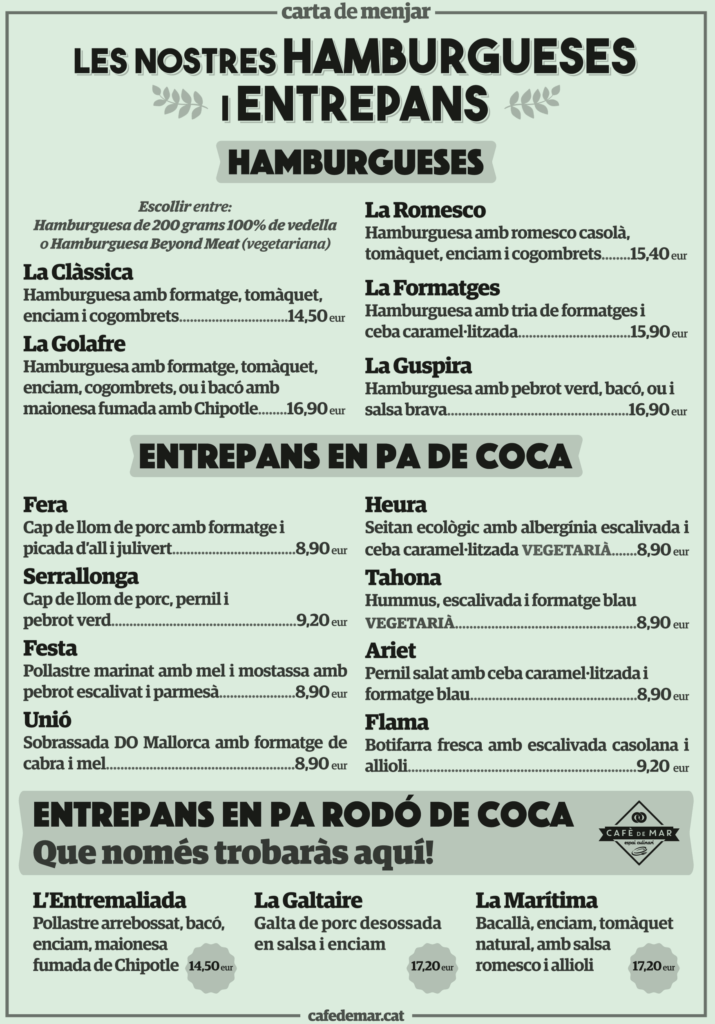 · La Clàssica Hamburguesa amb formatge, tomàquet, enciam i cogombrets 14,50 eur