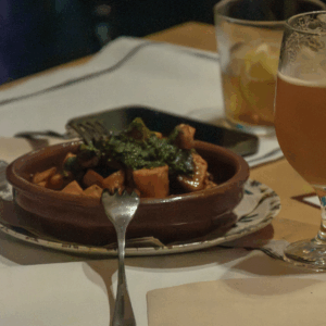 · Braves estil Cafè de Mar (amb allioli i salsa brava) Vegetarià Meitat 4,00 eur | Sencer 7,20 eur